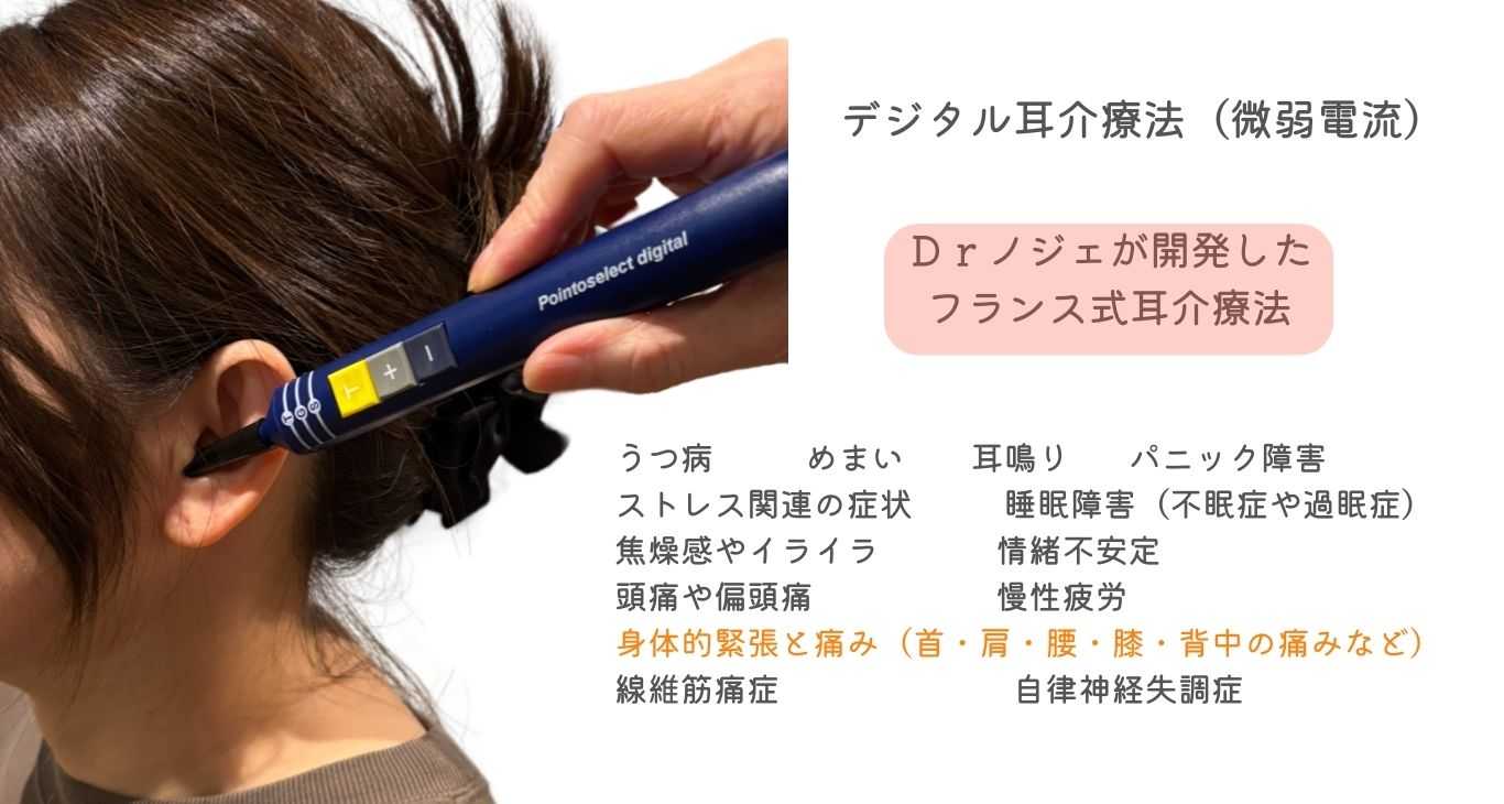デジタル耳介療法(微弱電流)は、フランスの医師Drノジェが発見した耳の神経分布と体の反射区領域を